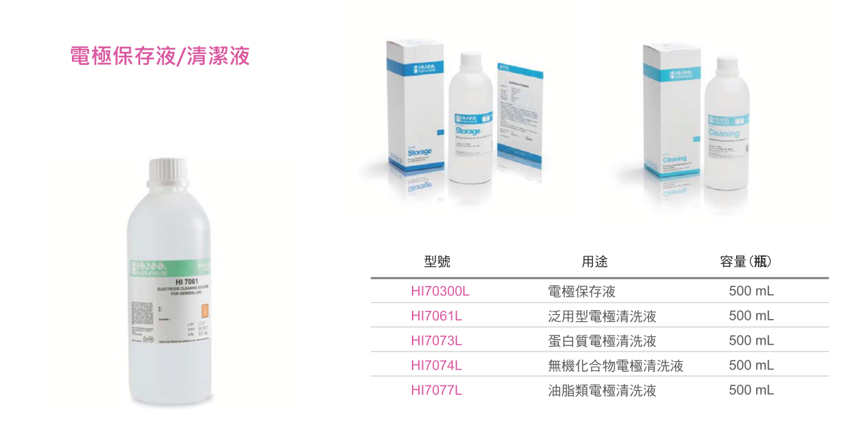 首頁 > 商品型錄 > HANNA-電極保存液、清潔液